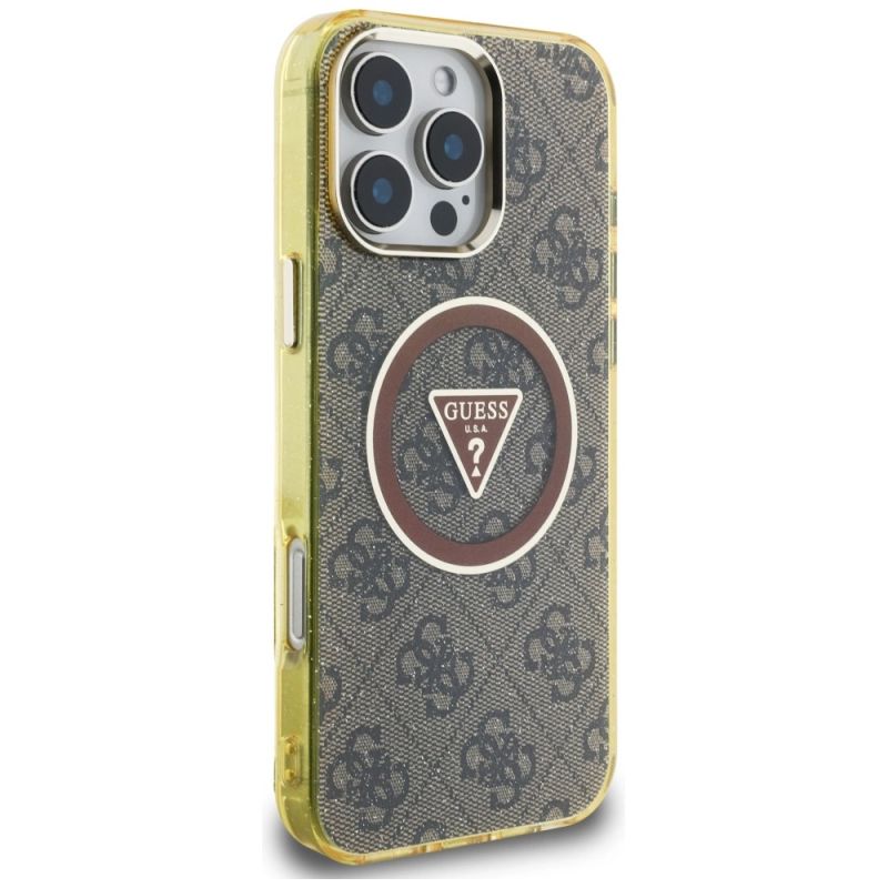 Guess IML Metal Glitter 4G Circle Triangle MagSafe Case for iPhone 16 Pro Max - Brown