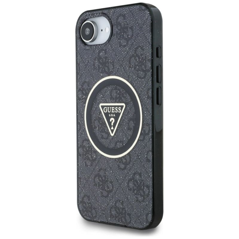 Guess IML Metal Glitter 4G Circle Triangle MagSafe Case for iPhone 16e - Black