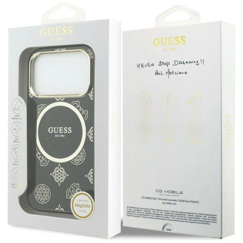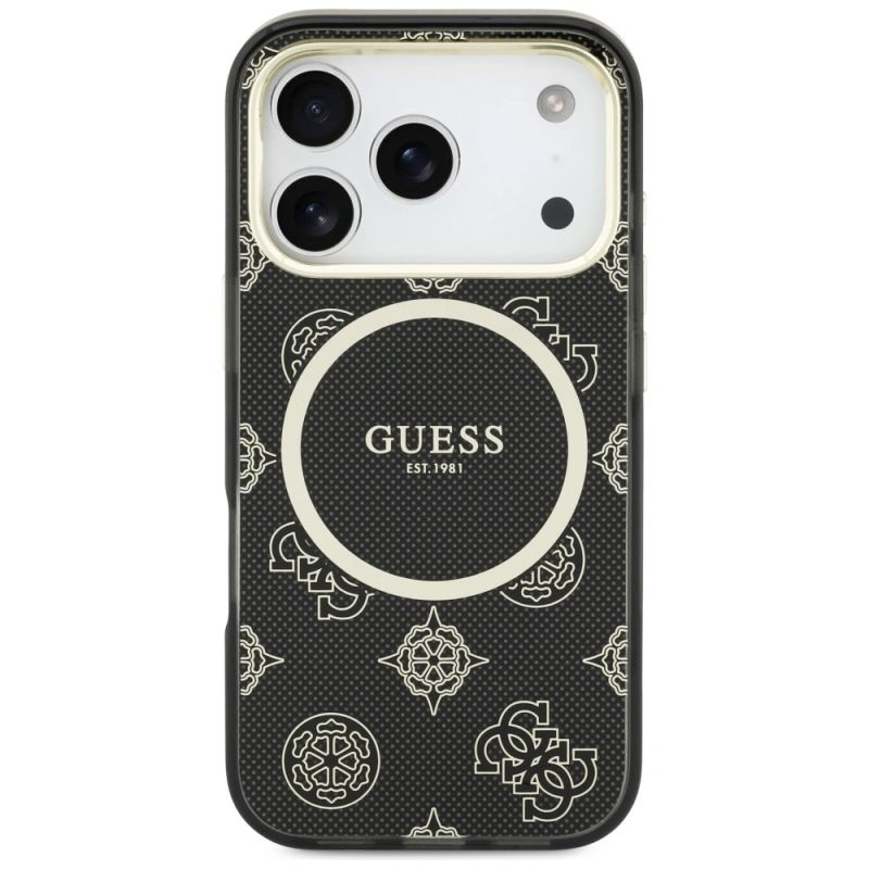 Guess IML Peony Dot MagSafe Case for iPhone 17 Pro - Black