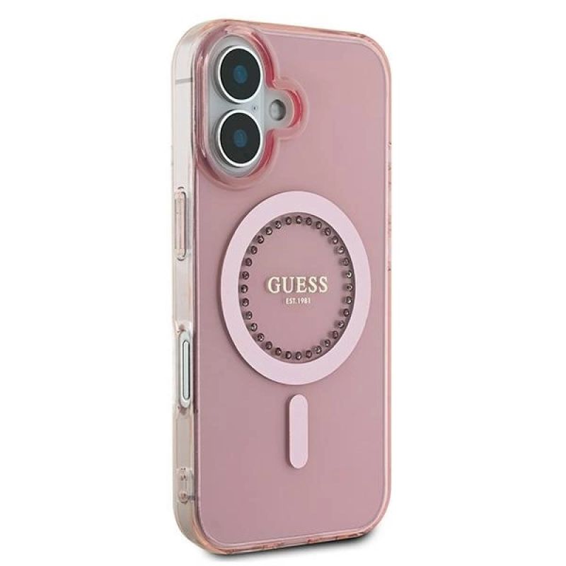 Guess IML Rhinestones MagSafe iPhone 16 Case - Pink
