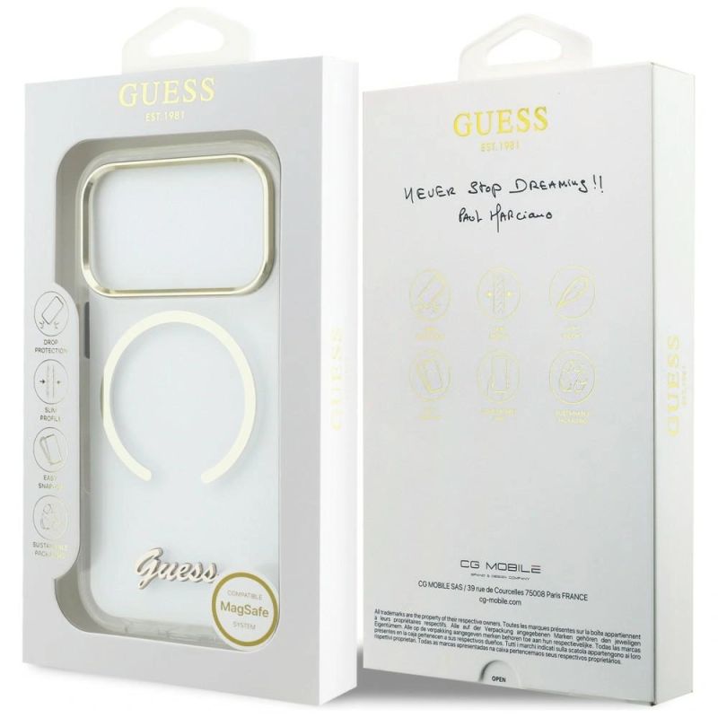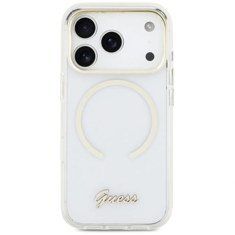 Guess IML Script Metal MagSafe Case for iPhone 17 Pro - Clear