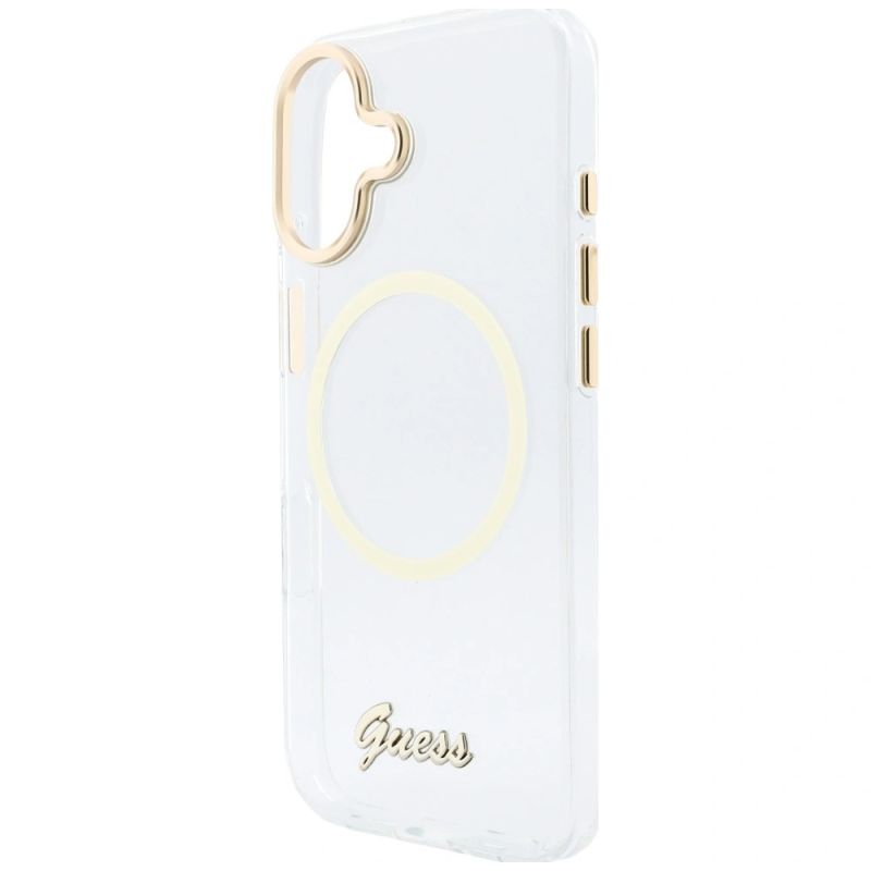 7. Guess IML Script Metal MagSafe Case for iPhone 17 - Transparent