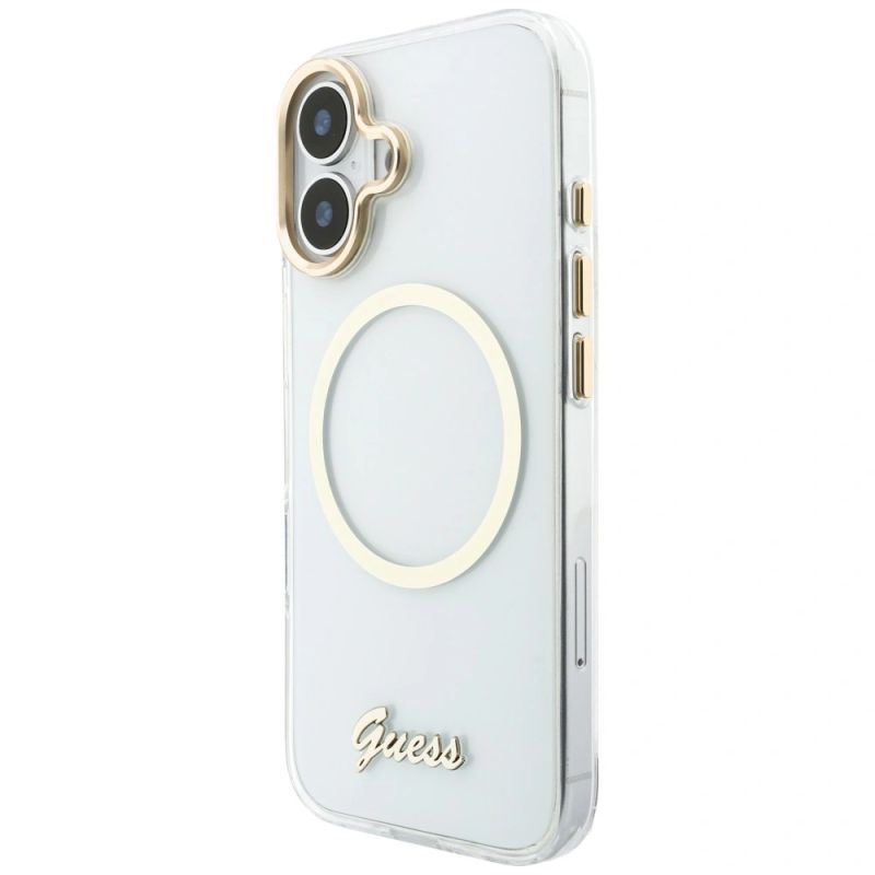 8. Guess IML Script Metal MagSafe Case for iPhone 17 - Transparent