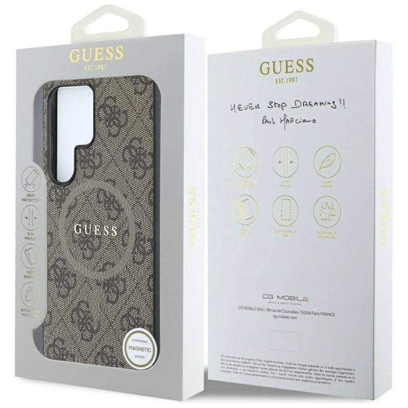 Guess Leather 4G Colored Ring Classic Logo MagSafe Case Samsung Galaxy S25 Ultra brown