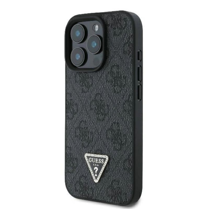 Guess Leather 4G Triangle Strass MagSafe Case for iPhone 16 Pro Max - Black