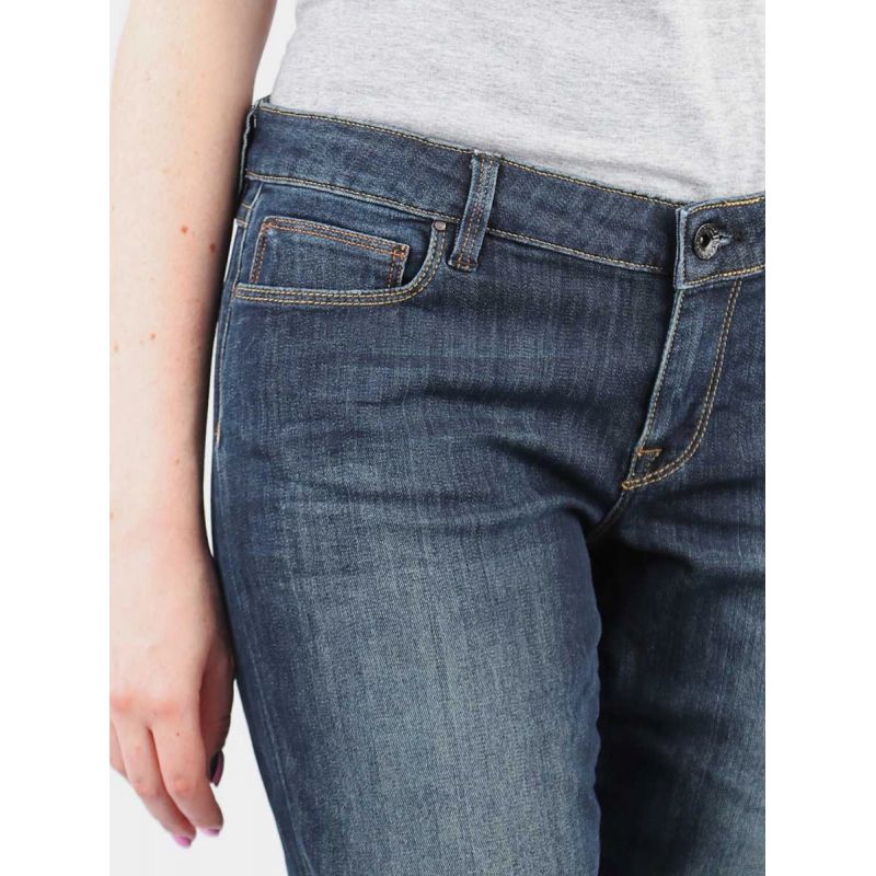 Women's low-rise regular-rise jeans with tapered legs. Zipper and button closure.
