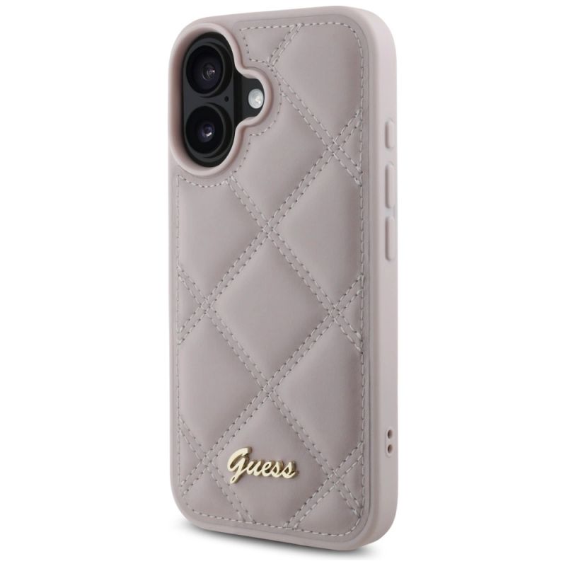 Guess Quilted Metal Logo iPhone 16 Case - Pink