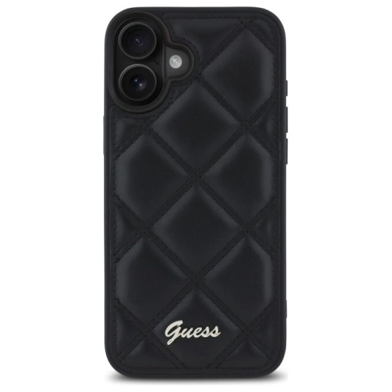 Guess Quilted Metal Logo iPhone 16 Plus Case - Black