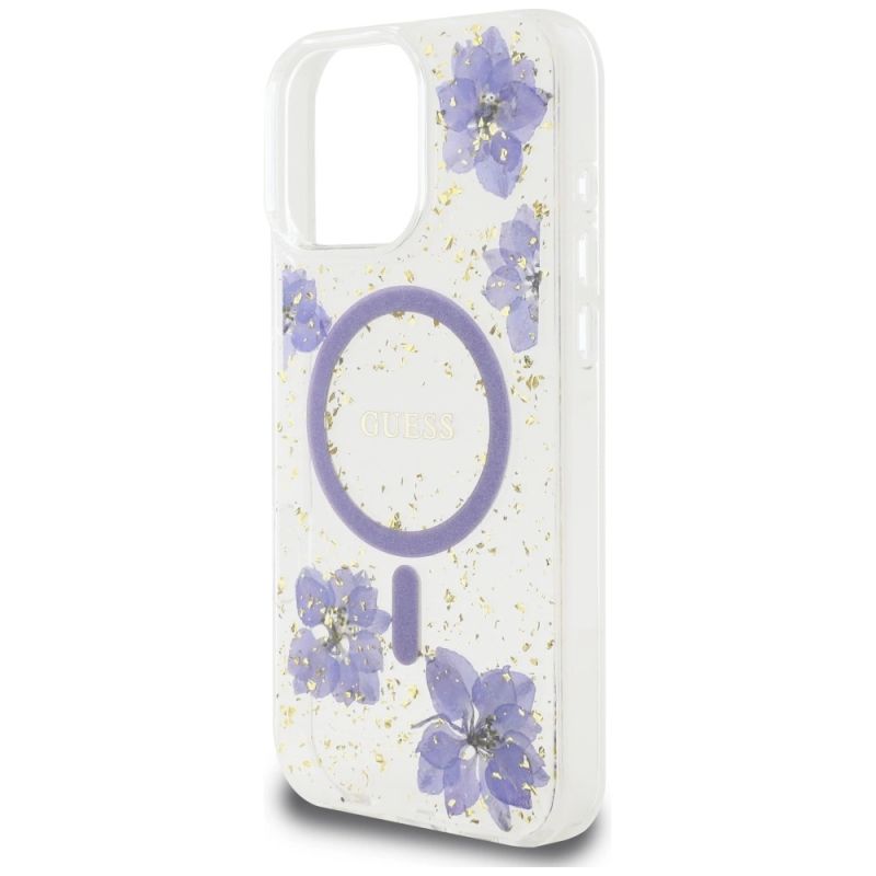 Collection Guess Resin Flowers MagSafe Type Hardcase Material TPU/PC Color Purple Compatibility iPhone 16 Pro 6.3"| Name | Details |