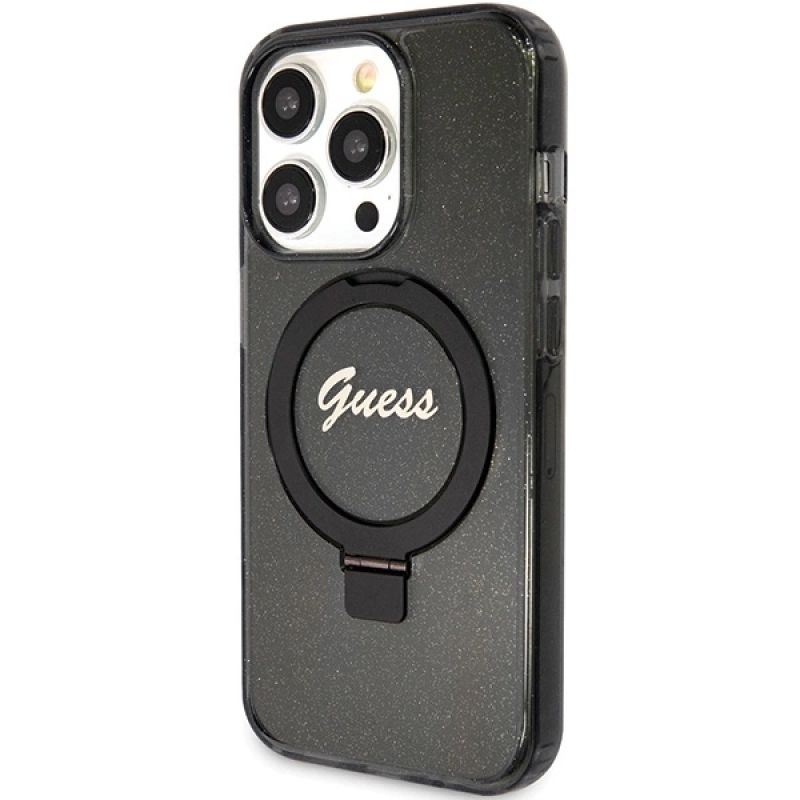 Guess Ring Stand Script Glitter MagSafe case for iPhone 15 Pro - black