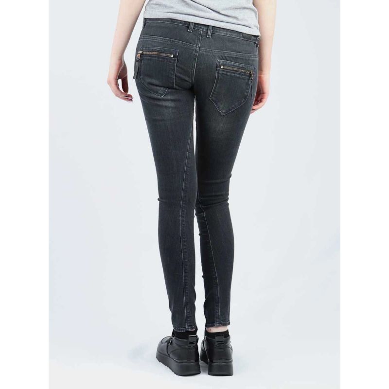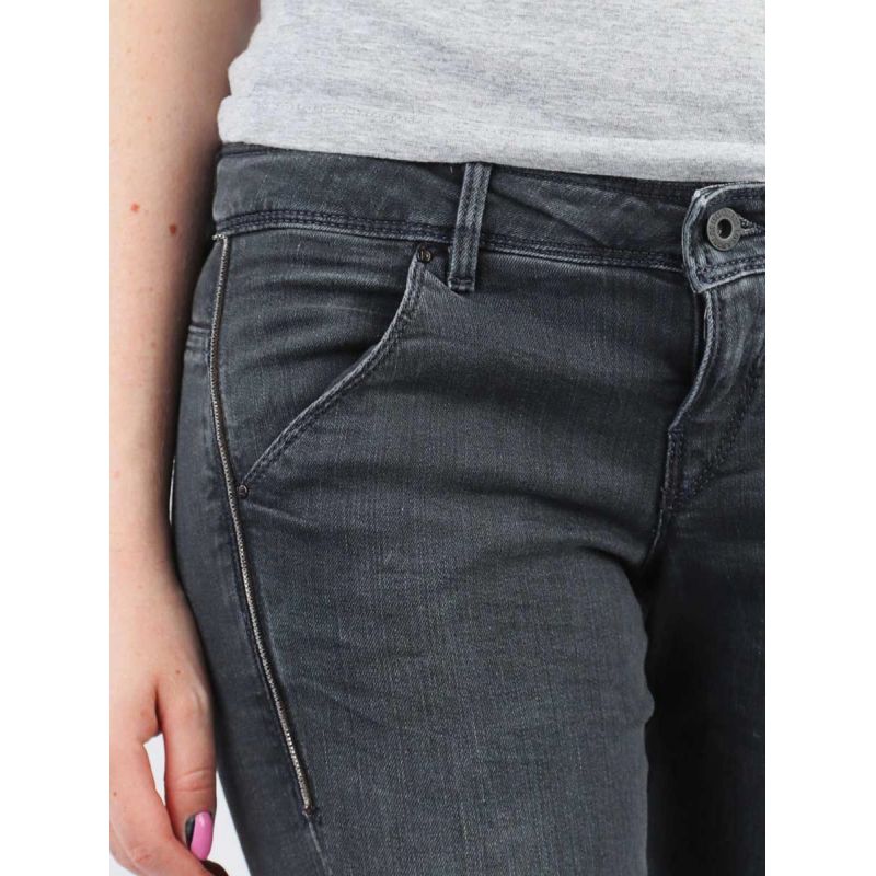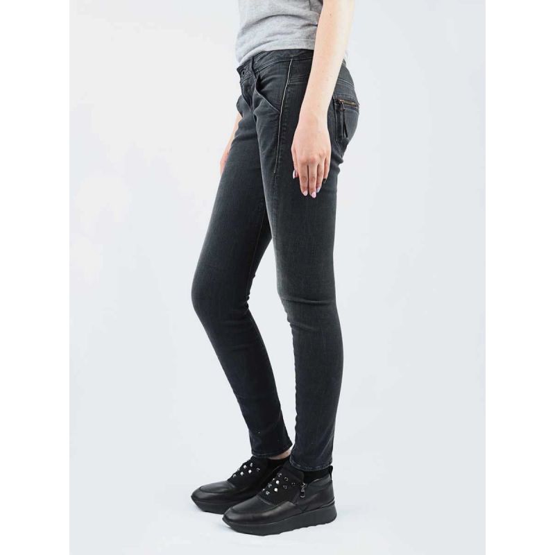 Women's low-rise regular-rise jeans with tapered legs. Zipper and button closure. Back zip pockets. Leather logo patch on the waistband.