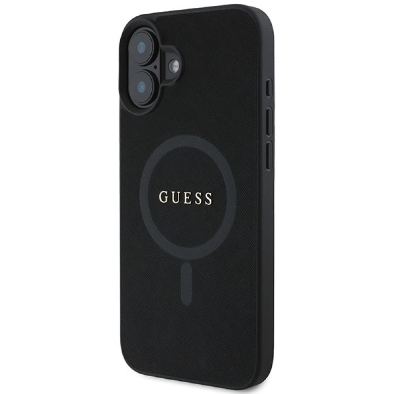 Guess Saffiano Classic Logo MagSafe iPhone 16 Plus Case - Black