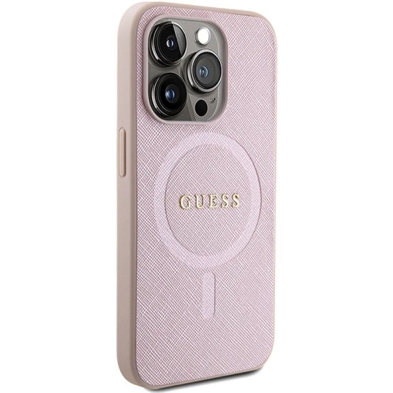 Guess Saffiano MagSafe case for iPhone 15 Pro - pink