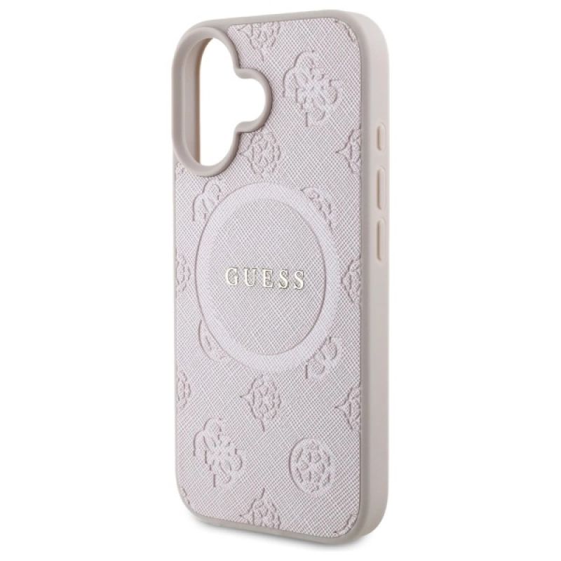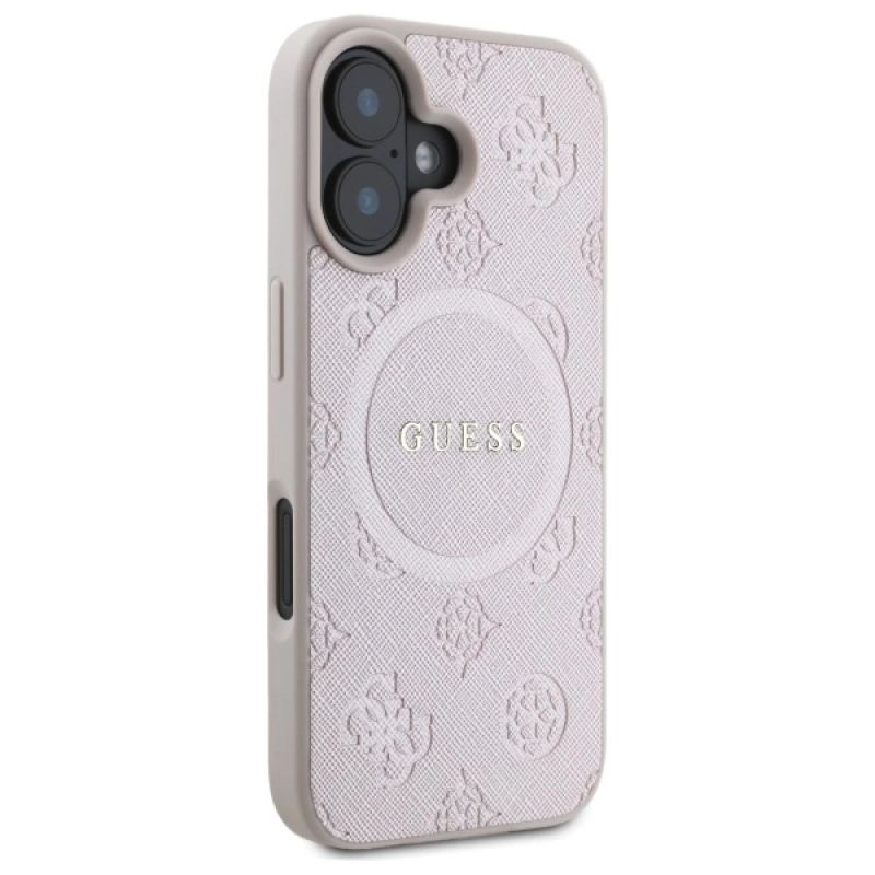 Guess Saffiano Peony Classic Logo MagSafe iPhone 16 Case - Pink