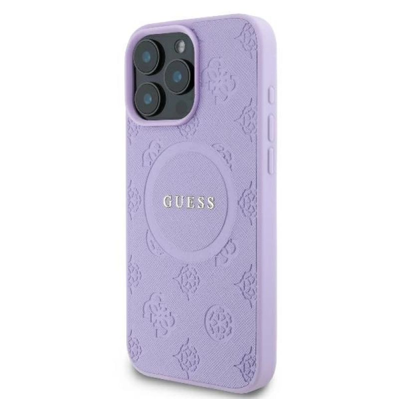 Guess Saffiano Peony Classic Logo MagSafe iPhone 16 Pro Max Case - Purple