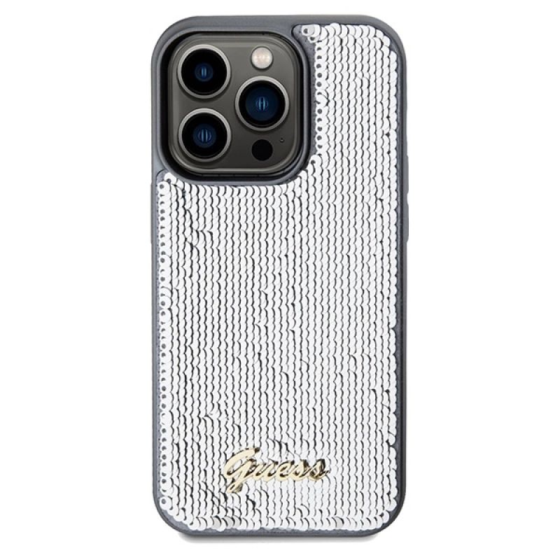 Guess Sequin Script Metal case for iPhone 14 Pro - silver
