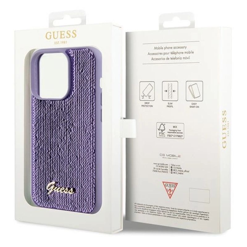 Guess Sequin Script Metal case for iPhone 15 Pro Max - purple