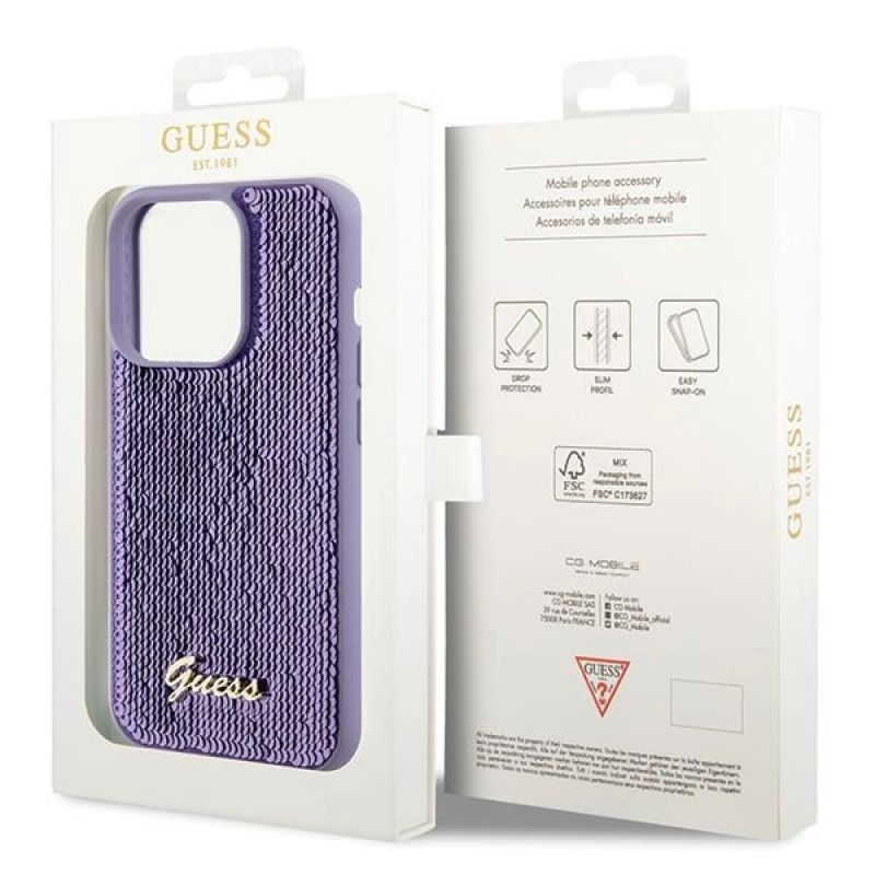Guess Sequin Script Metal case for iPhone 15 Pro - purple