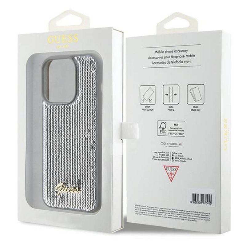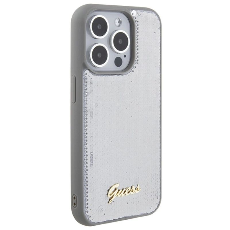 Guess Sequin Script Metal case for iPhone 15 Pro - silver