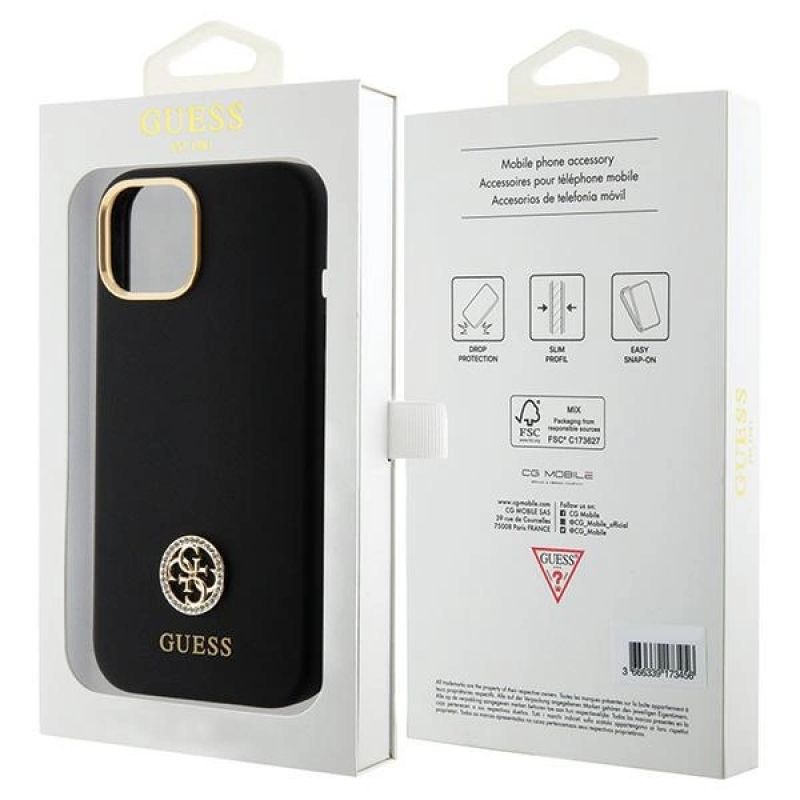 Guess Silicone Logo Strass 4G Case for iPhone 15 - Black