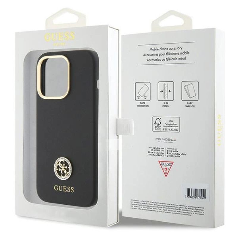 Guess Silicone Logo Strass 4G Case for iPhone 15 Pro - Black