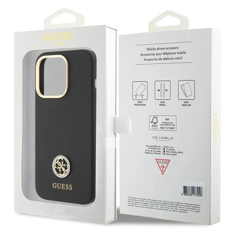 Guess Silicone Logo Strass 4G case for iPhone 15 Pro Max - black