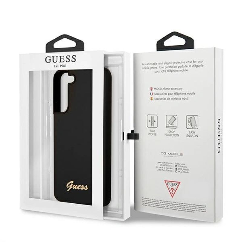 Guess Silicone Script Metal Logo Case for Samsung Galaxy S22+ - Black