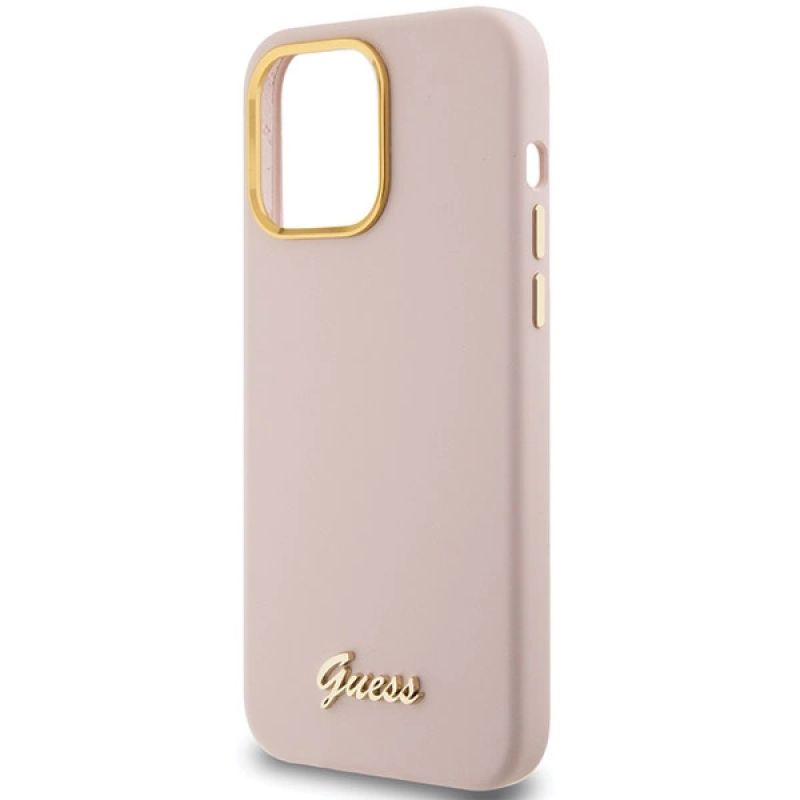Guess Silicone Script Metal Logo & Frame case for iPhone 15 Pro Max - pink