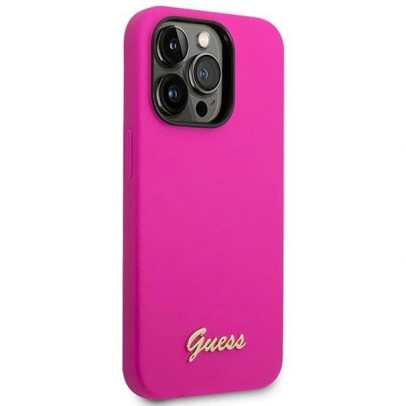 Guess Silicone Vintage Gold Logo Case for iPhone 14 Pro - Fuchsia