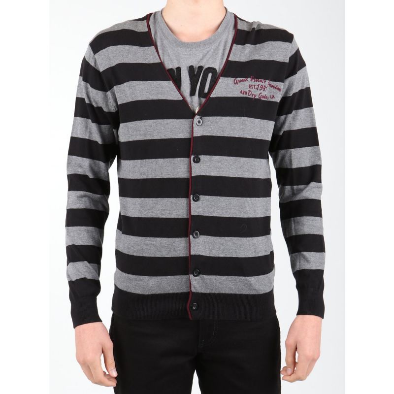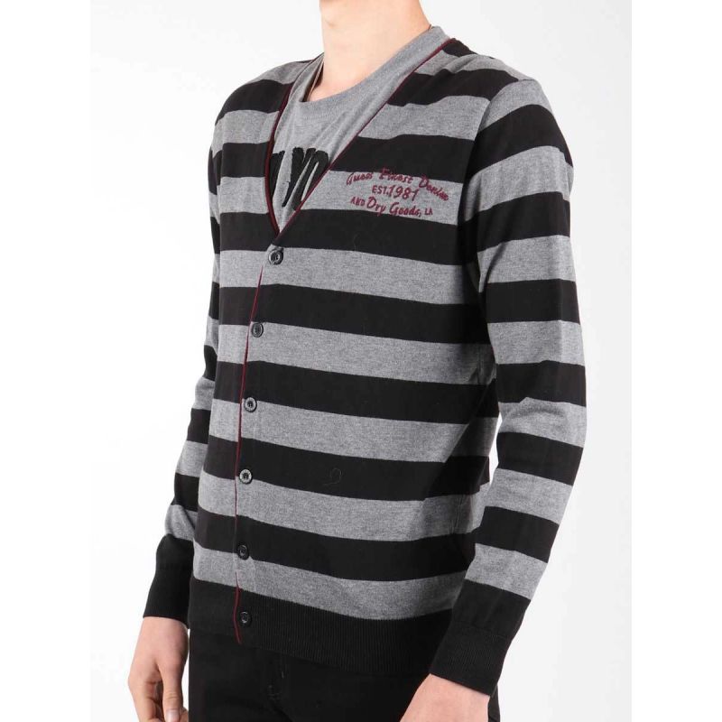 -Men's sweater with long sleeves -The model is fastened with buttons -Color: black and gray stripes -Material: 100% cotton