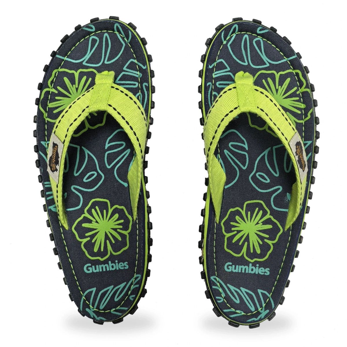 Gumbies Islander Flip-Flops Lime Hibiscus GU-FFISL148