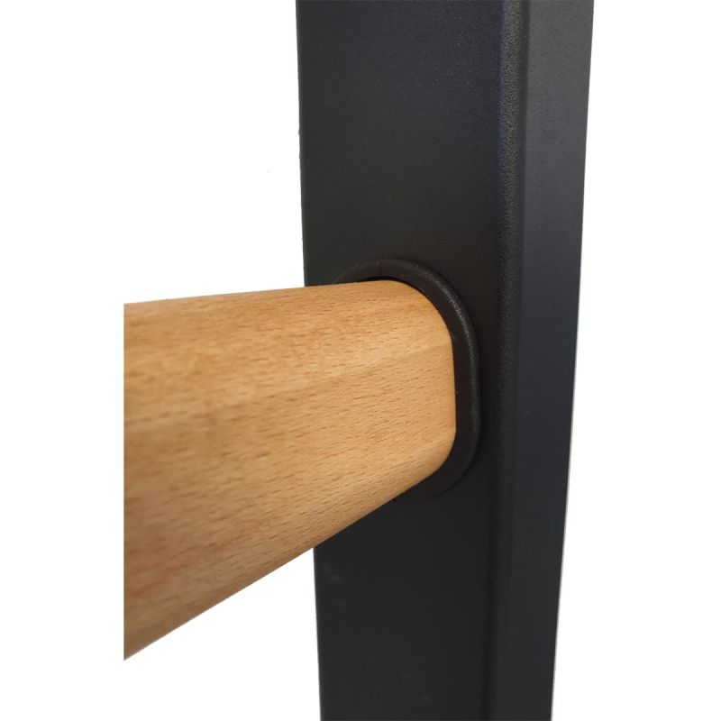This gymnastics ladder is a model that perfectly complements Scandinavian interiors. The vertical profiles (40mm x 50mm) are made of high-quality, powder-coated metal. The rungs are made of oval beech, and their surface is hand-oiled, making the ladder comfortable to use. A permanently mounted metal pull-up bar is located at the top of the ladder, allowing you to strengthen your arm and back muscles using a variety of grips.