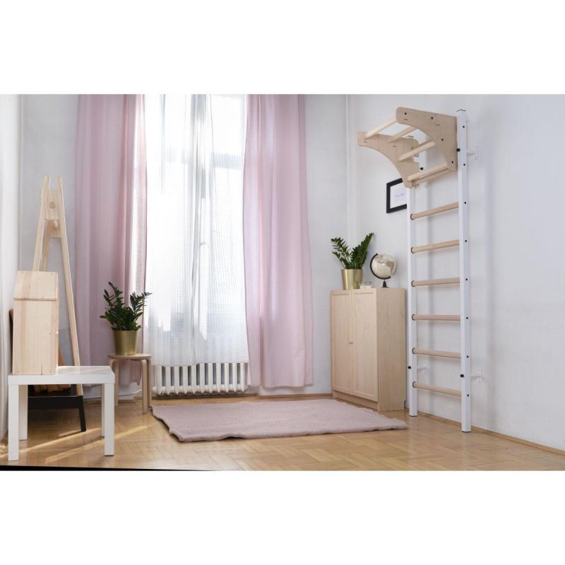 This multifunctional gymnastics ladder is an innovative combination of wood and metal. It will fit perfectly into any modern interior, thanks to its carefully selected, high-quality beech wood and stainless steel. This ladder guarantees high-quality equipment and opportunities for greater physical activity.