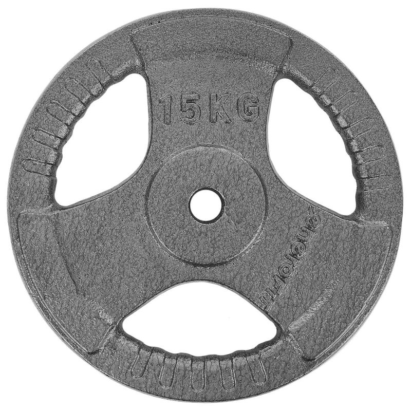 The 28mm diameter hole fits most bars. Durable cast iron and high-quality hammertone paint protect against external factors. Use the weight plate for a long time without worrying about damage. This product is also perfect for use without a bar. Specially contoured handles make it easy to put on and take off the weight. Thanks to the appropriate shape and handles, the plate is comfortable and easy to handle .