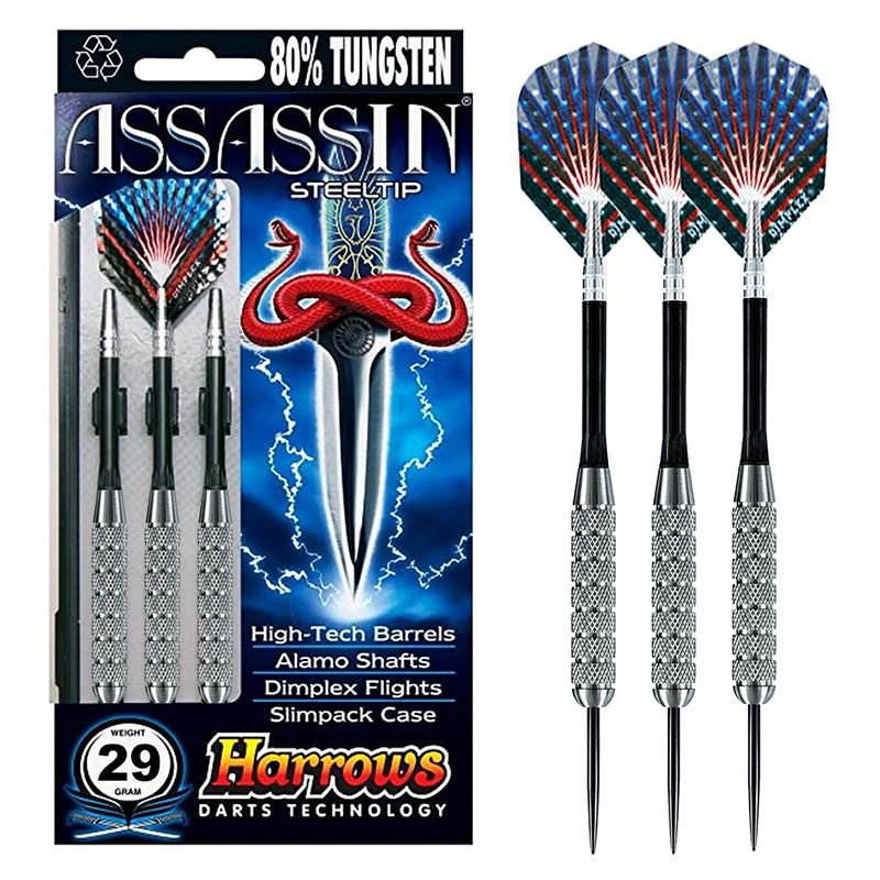 The darts have steel tips and are designed for playing on sisal and paper dartboards.