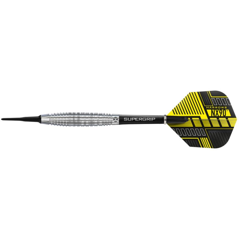 - NX90 darts feature black, medium-sized Supergrip shafts, new 100-micron NX90 flights and are weighed to an accuracy of +/- 0.05g.