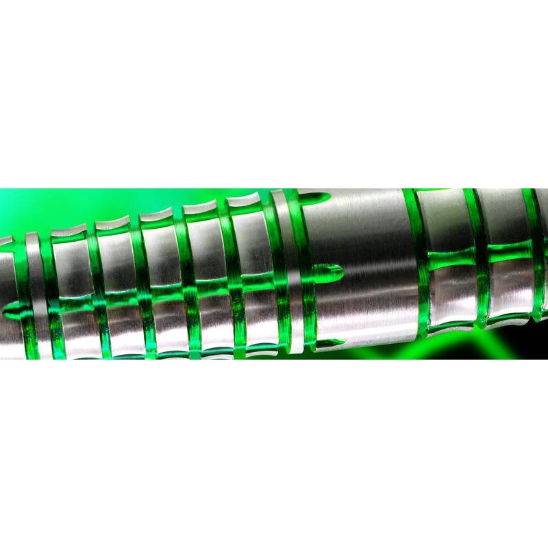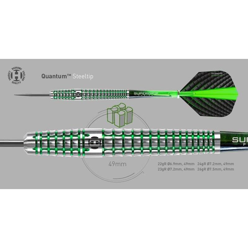Quantum darts feature a complex combination of precision milling, re-cutting and a concave, vibrant metallic coating that delivers a unique, concave, segmented grip to provide players with perfectly honed, multi-directional control.