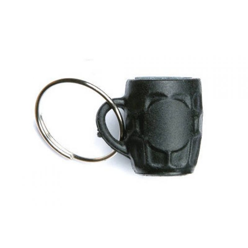 A keychain in the shape of a mug, with a sharpener for sharpening tips.