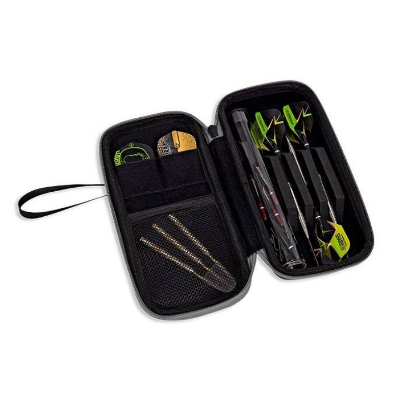 - Extremely practical and ergonomically compact, the case is designed to hold 3 fully assembled darts and provide additional storage space.
