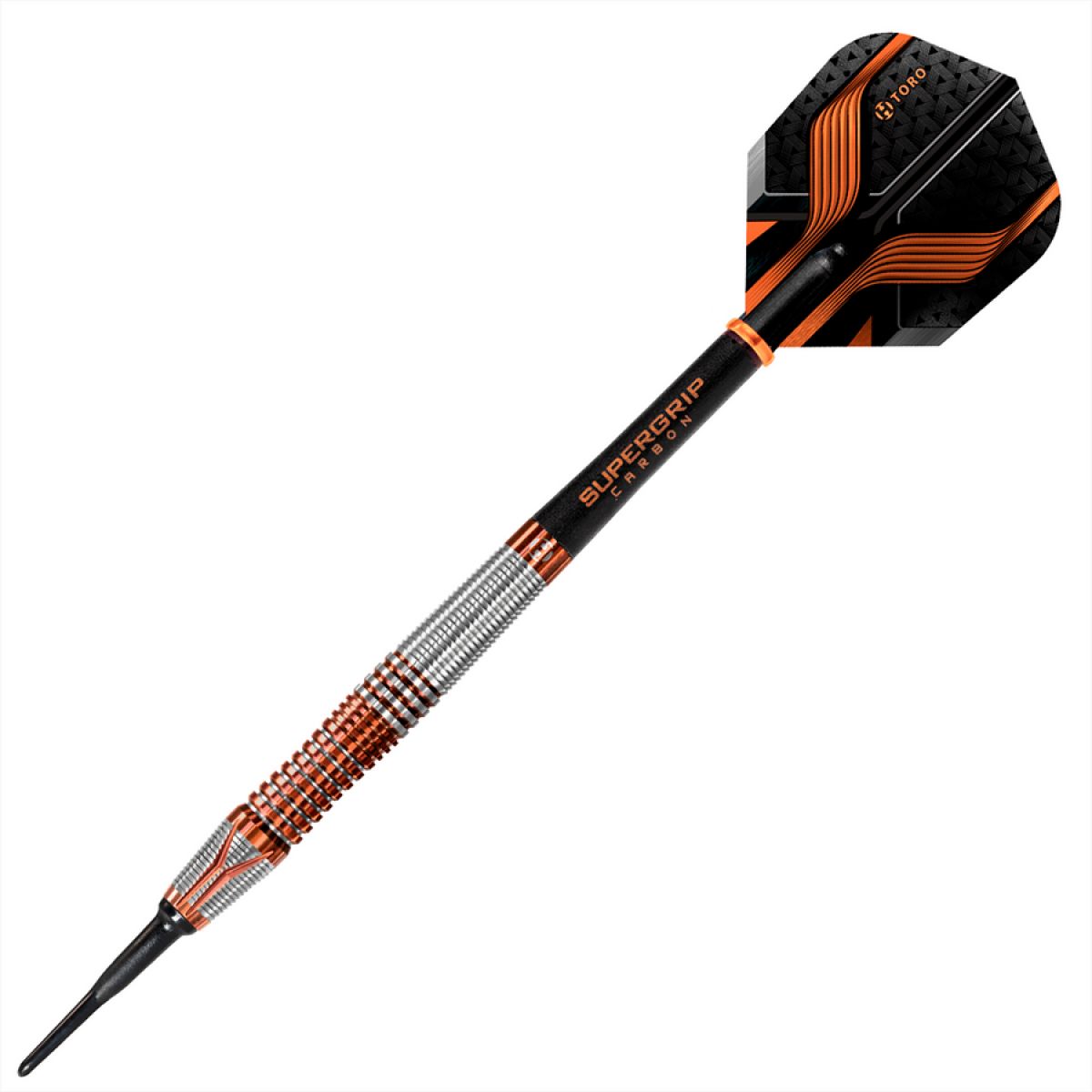 TORO darts come with Supergrip Carbon midi shafts, new 100 micron TORO darts and are balanced to an accuracy of +/- 0.05g.