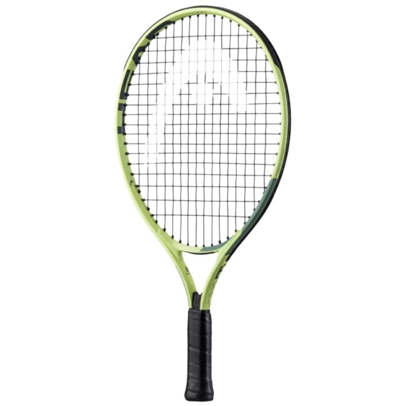 Head Extreme Jr19 3 5/8 Green Tennis Racket 235442 SC05 This Head kids' racket is perfect for recreational tennis. Damp+ technology dampens shocks. A 3/4 zip-up cover with an adjustable strap is included. Specifications: Age: 2-4 years or height 89-100 cm Handle size: L0 Material: aluminum Weight (unstrung): 175 g Racket length: 48.5 cm / 19 IN String pattern: 16x17 in Balance: 23 cm Head area: 520 cm² / 81 IN² Frame width (profile): 20 mm Grip: factory Pre-strung: yes 3/4 cover included: yes
