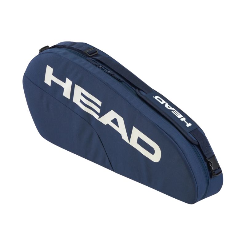 Head Racquet Bag S Navy Blue 261325 Head tennis bag that holds up to 3 rackets and other accessories essential on the court. A large zippered compartment and a side pocket for small items. Reinforced construction and a comfortable, adjustable strap make it easy to carry. Modern design that emphasizes the sporty character. Technical data: Material: 100% polyester Dimensions: 76 x 32 x 9 cm Space for 3 rackets One compartment and a side pocket