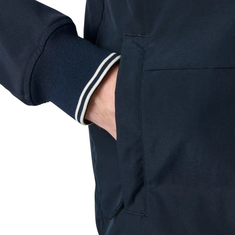 The men's Marine Bomber Jacket is designed for everyday wear in spring, summer, and early fall. A durable water-repellent (DWR) finish provides lightweight windproofing and water resistance, making it ideal for unpredictable weather. Its classic, nautical bomber cut offers versatility, pairing perfectly with casual or semi-formal outfits. Lightweight yet functional, this jacket is perfect for morning commutes, weekend getaways, and evening strolls.