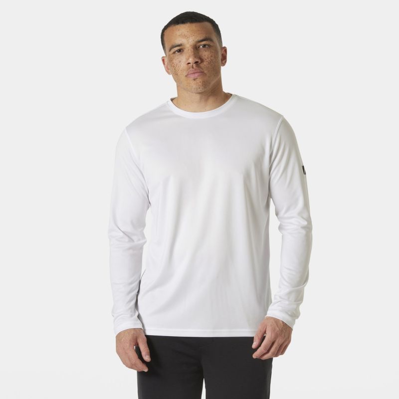 Men's long-sleeved crew neck T-shirt in sun protection material. Main material: technical polyester. Quick-drying, moisture-wicking material. Flatlock seams for increased comfort. HH® logo print on the sleeve. Crew neck. Bluesign® compliant. Recycled fibers. UPF 50+ sun protection. Material: Outer material: 100% recycled polyester.