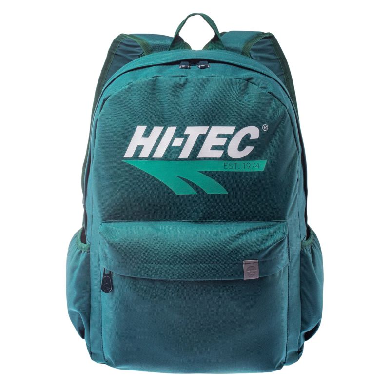 The BRIGG urban backpack by Hi-Tec features a spacious main zippered compartment, perfect for storing larger notebooks or a briefcase. An additional front pocket holds essentials. Two side pockets hold a thermal mug or water bottle. A large brand logo completes the look.