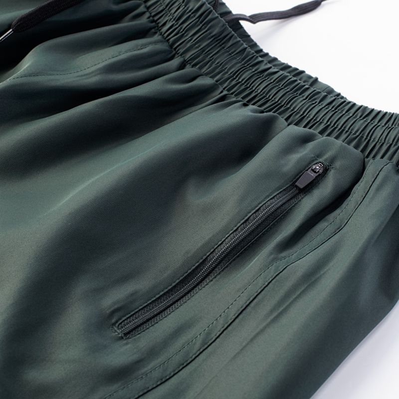The HICKO men's training shorts feature a wide elastic waistband with a drawstring, allowing for a personalized fit and adjustment. Made of moisture-wicking synthetic materials, these shorts are perfect for a variety of sports activities. Two zippered side pockets allow for secure storage of small items. The loose fit allows for full range of motion during exercise.