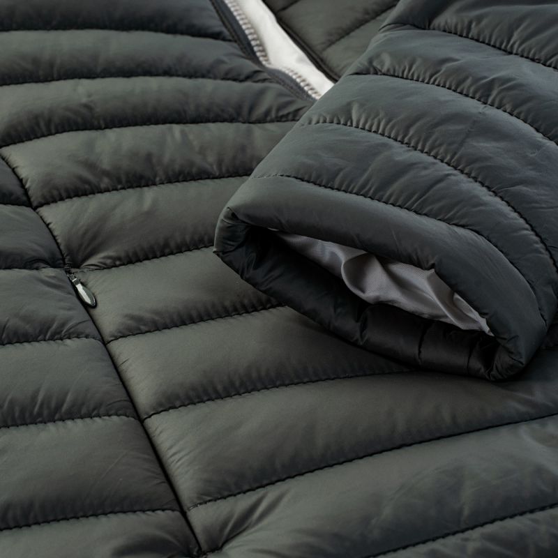 • Built-in hood with high collar.