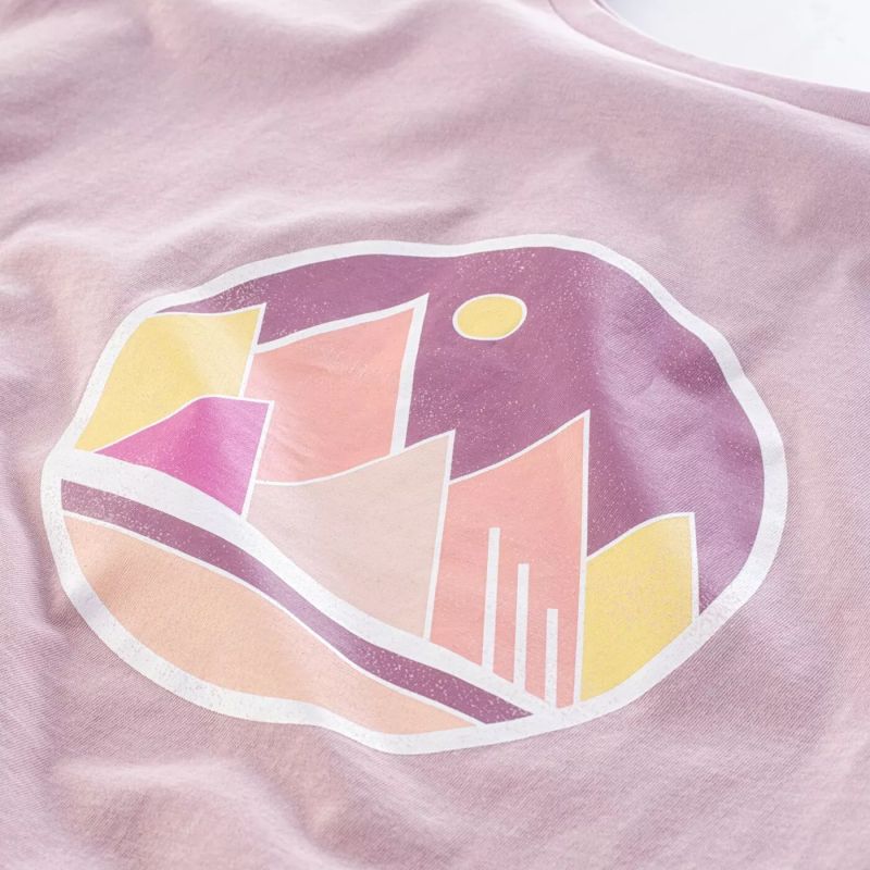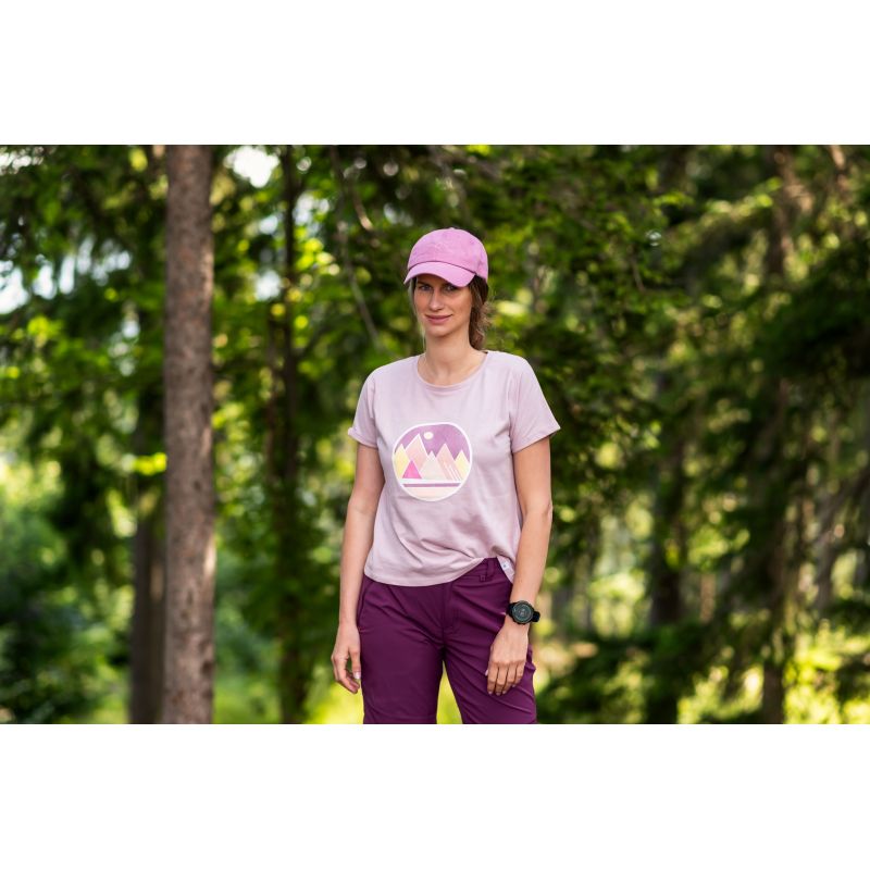 The LADY ELON women's cotton T-shirt has a comfortable, loose fit that allows for complete freedom of movement. The material is hypoallergenic, and the rounded neckline prevents chafing. A striking graphic with a mountain motif is placed against a solid background. The soft-touch fabric will make you feel comfortable in this T-shirt every day. It's perfect for a walk or a hike.