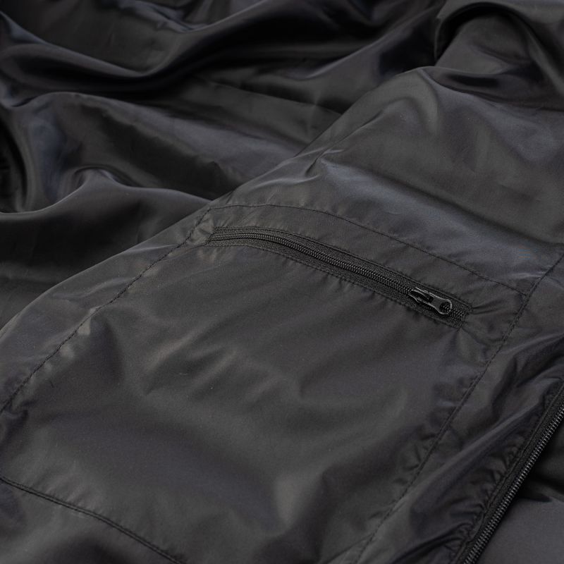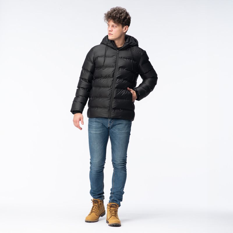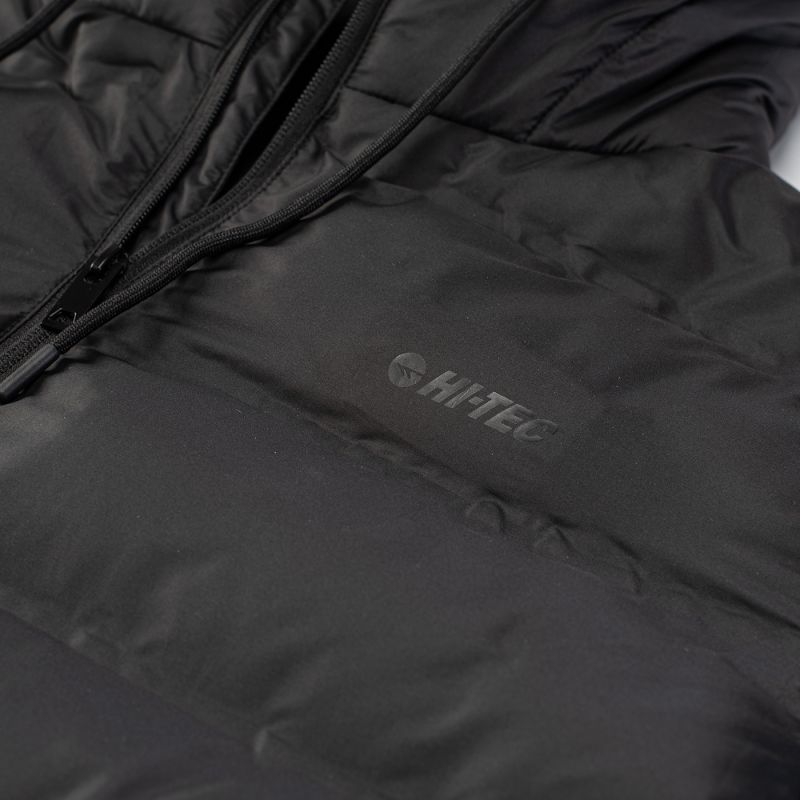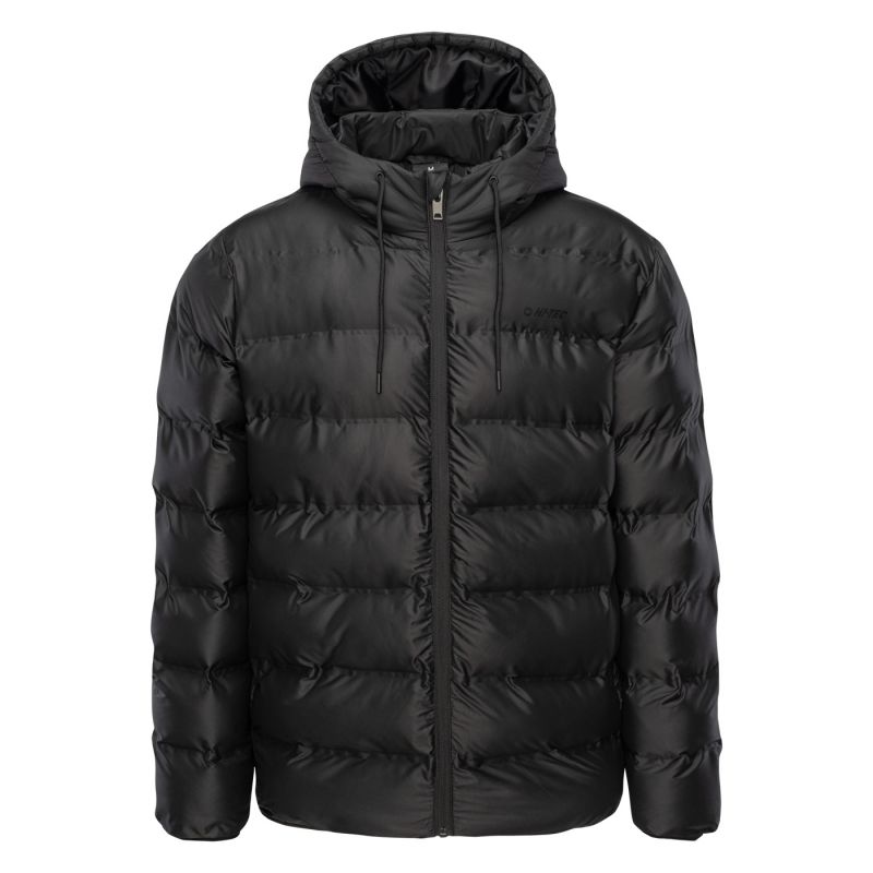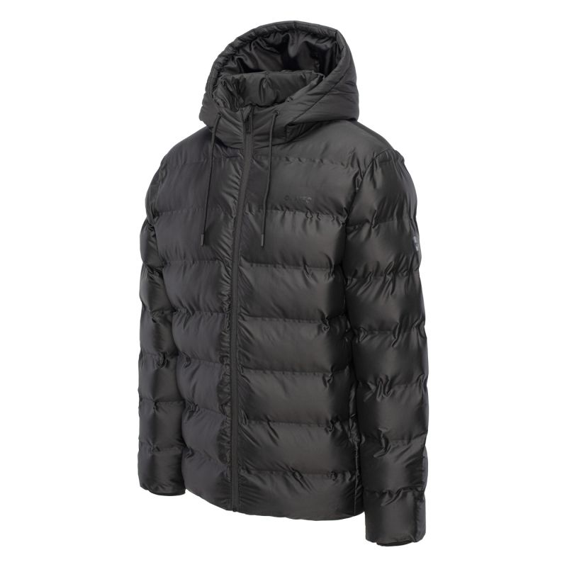 The men's DIORRO quilted jacket by Hi-Tec features a simple cut. A high collar and integrated, adjustable hood provide protection from gusts of wind. The synthetic fill provides thermal comfort and retains its properties when wet. The fill panels are welded rather than stitched, ensuring the fill stays in place. Additional features of the DIORRO model include inner sleeves , two side pockets, and an inner zipped pocket.
