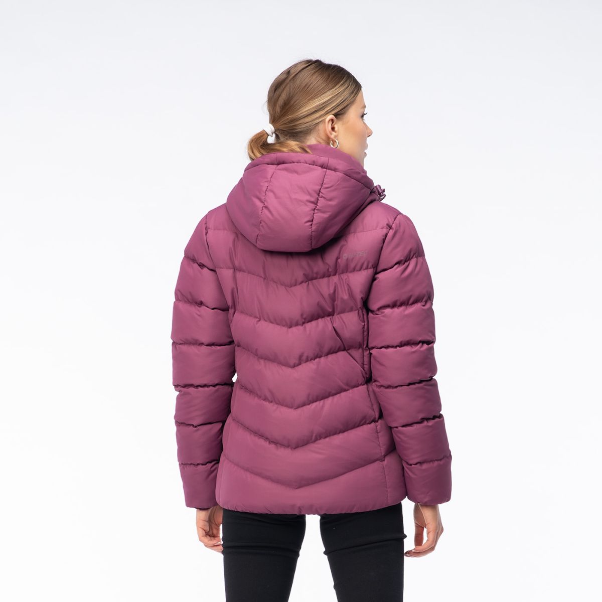 The LADY VARMI women's winter jacket is a jacket that will keep you warm in the winter. The synthetic insulation used doesn't absorb moisture, dries faster, and most importantly, "keeps you warm" even when wet. The detachable hood protects you from gusts of wind, and thanks to the drawstrings, you can quickly adjust it to your head. A DWR coating increases the fabric's water resistance. Two zippered pockets allow you to safely store your wallet or phone. The fashionable color scheme will complement many styles.